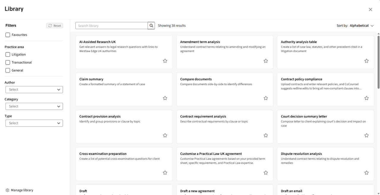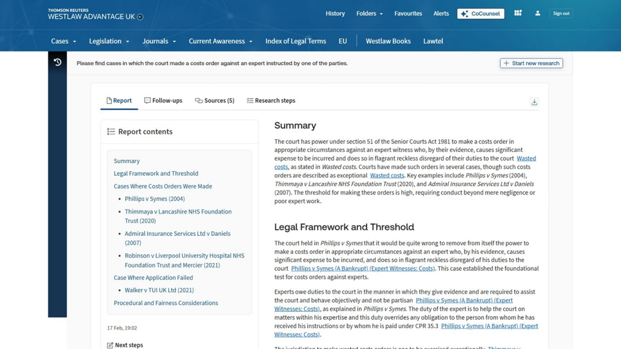 Accelerate your research with CoCounsel Legal UK's advanced skills, grounded in Westlaw and Practical Law content.