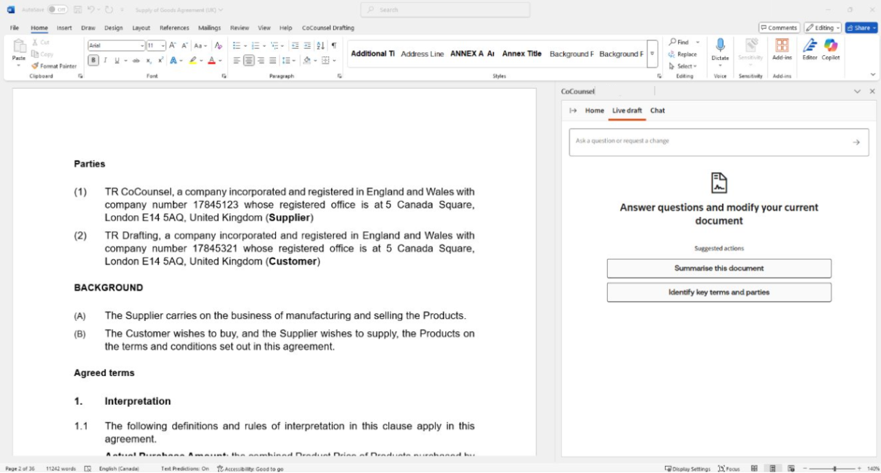 Complete high-quality legal drafts and easily view documents with CoCounsel Legal UK