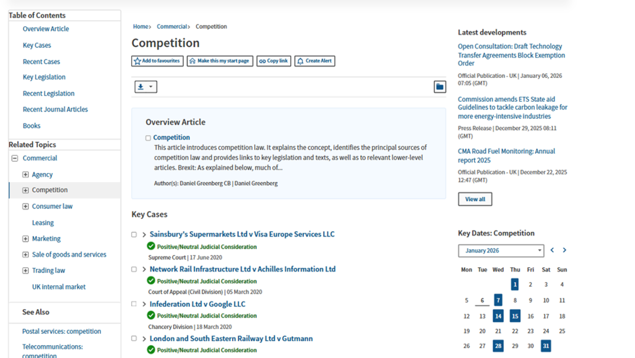 Access an unparalleled collection of resources with journals, extensive news sources, and over 300 commentary titles from the Sweet & Maxwell portfolio, including The White Book, Archbold, and Chitty on Contracts.
