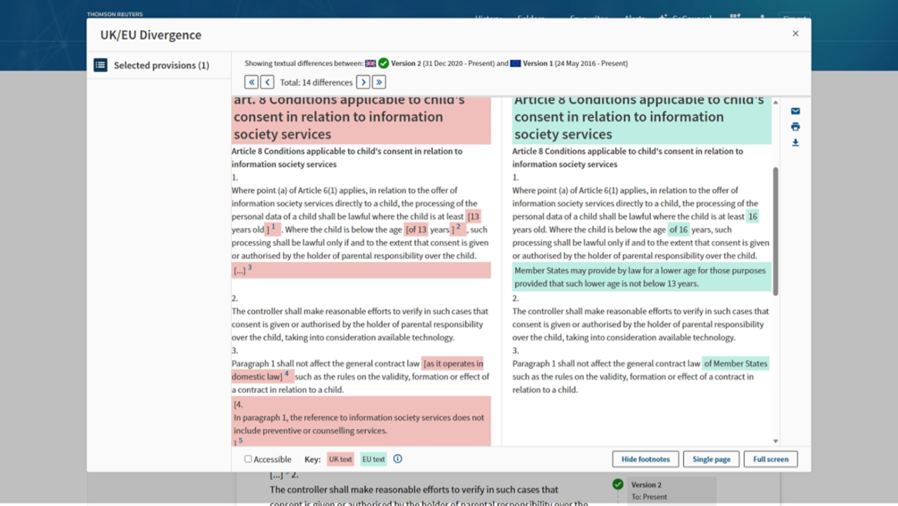 Easily keep up with emerging differences between UK and EU laws so you can remain compliant in both jurisdictions. As the UK takes control over critical areas of its regulatory framework, see at a glance how divergence may impact and provide opportunities for your clients and business.