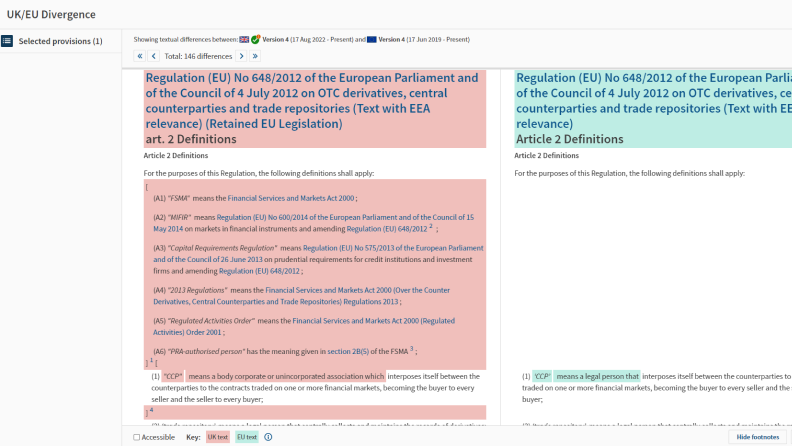 Easily keep up with emerging differences between UK and EU law so you can remain compliant in both jurisdictions. As the UK takes control over critical areas of its regulatory framework, see at a glance how divergence may impact and provide opportunities for your clients and business.