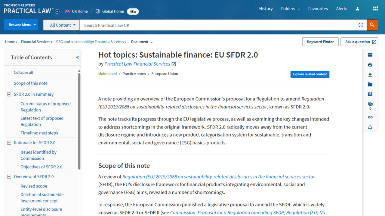 Create a seamless research experience by merging your online legal research tools with the trusted information of Practical Law. Subscribers can access relevant cases, legislation, and journals from within Practical Law while using Westlaw UK.