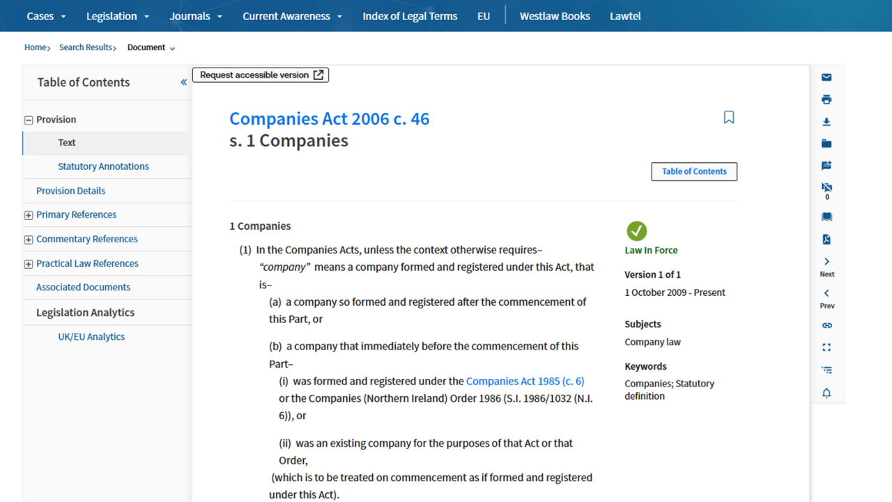 Navigate between relevant documents without leaving Westlaw UK. Link directly to a resource mentioned in a journal, article, book, or statutory provision, allowing readers to be taken directly to the resource.