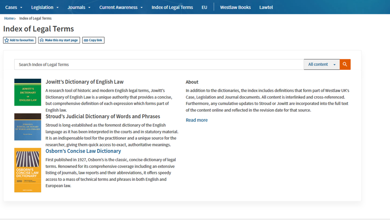 Offers concise expert explanations of legal concepts and terms, including links to supporting cases and legislation. It also provides the ability to include definitions from legislation in searches, ensuring you can locate the authority you need.